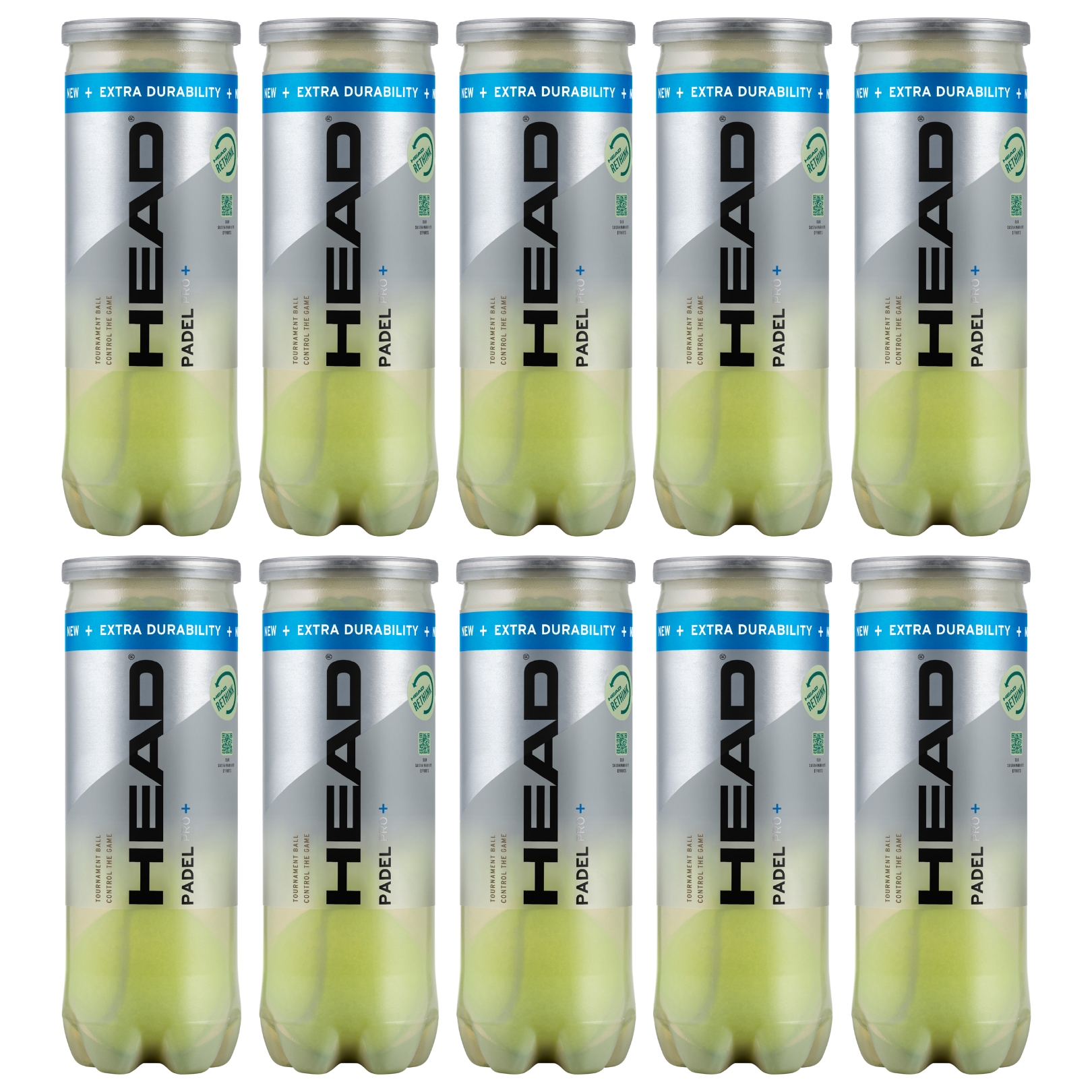 Paket med 10 rör Head Padel Pro+ - totalt 30 padelbollar!
