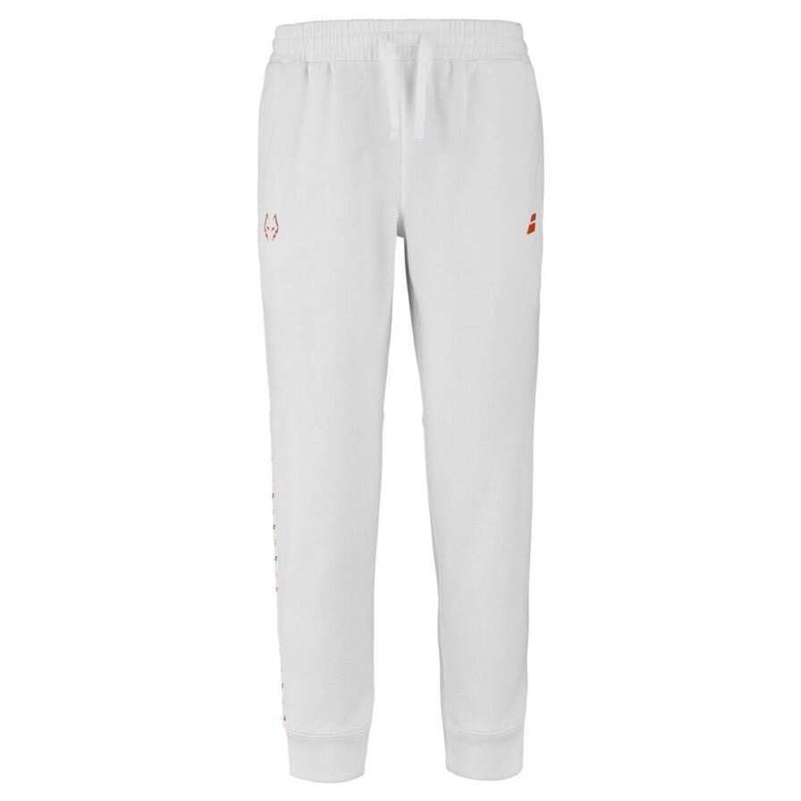 Det tjocka och mjuka materialet känns slätt på utsidan och riktigt mjukt på insidan – perfekt för kalla dagar och uppvärmning. Byxorna har två sidofickor och en bakficka, perfekta för att förvara bollar eller små personliga tillhörigheter. Med ribbade muddar vid anklarna och en elastisk midja med dragsko får du en säker och justerbar passform.