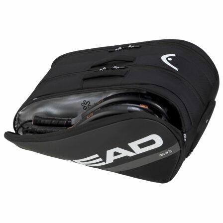 Denna Head padelväska har gott om plats för all din utrustning. Den är utrustad med tre fack, varav ett är termoisolerat med CCT+, som skyddar dina racketar mot temperaturskillnader. Väskan rymmer upp till 7 padelracketar, men om du inte bär så många finns det gott om utrymme för kläder, bollar och andra tillbehör. Dessutom finns ett ventilerat skofack för att hålla dina skor separerade från resten av din utrustning. Slutligen kan du bära väskan med de justerbara ryggsäckremmarna eller i handen via de praktiska handtagen.