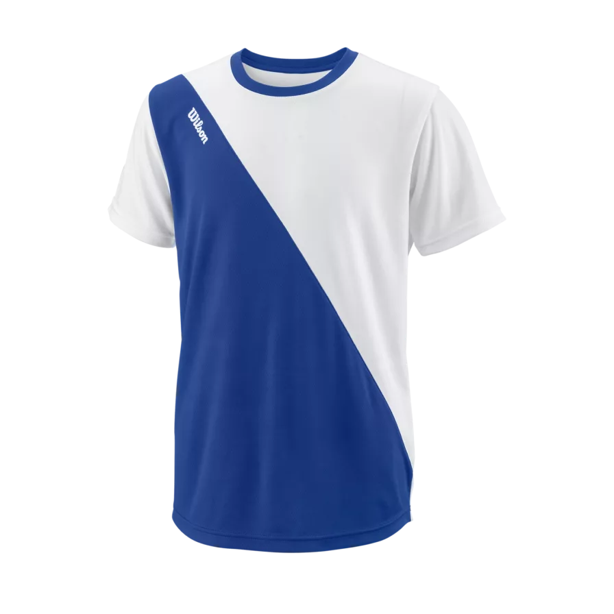 Här kommer Wilsons enormt populära junior träning -och sport- t-shirt för tonårspojken. Den kommer i en snygg vit och blå design i mjuka och sköna kvalitetsmaterial.